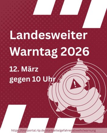 Landesweiter Warntag Rheinland-Pfalz 2026 Am Donnerstag, 12.03.2026, werden ab 10:00 Uhr im Rahmen des landesweiten Warntages verschiedene Warnmittel getestet – darunter Sirenen, Warn-Apps und Cell Broadcast. Auf dem Bild seht […]