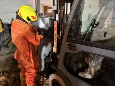 Bei Arbeiten stürzte ein Heizöltank (600L Fassungsvermögen) um. Dabei liefen ca. 100L Heizöl ins Erdreich und in den Verkehrsraum. Durch die Feuerwehr wurde das ausgelaufene Heizöl eingedämmt. Ebenso wurde die Bergung des Tanks übernommen.